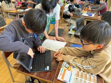5年生最初の図画工作科では、学校の様々な場所で、様々な道具を使って撮影した写真を組み合わせることでアニメーションを制作しました。友達と協力しながら取り組んだり、友達や自分の作品がうまくできたことを認め合ったりする姿がたくさん見られました。