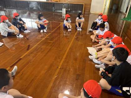運動会に向けて始動しました。団役員を中心に大切にしたい団のスローガンを確かめました。