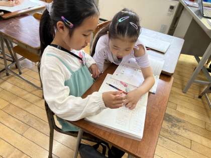 算数科の学習では、筆算の仕方について考えています。「どんなふうに考えたの」と互いの考えを聴き合いました。