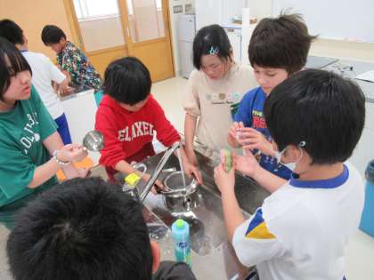 家庭科では、お茶をいれる学習に取り組みました。グループの仲間と役割を分担し、片付けまでしっかりと行う子供たちでした。