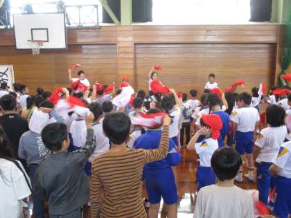 結団式を行いました。各団に分かれて、第1回目の応援練習も行い、運動会に向けて士気を高めた奥田っ子でした。