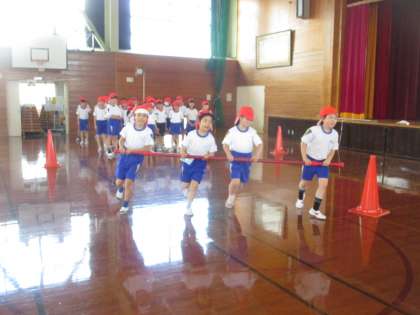 運動会の種目である「台風の目」の練習を3年生と4年生で行いました。