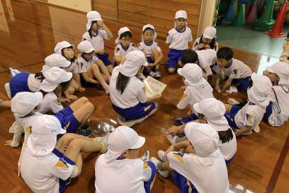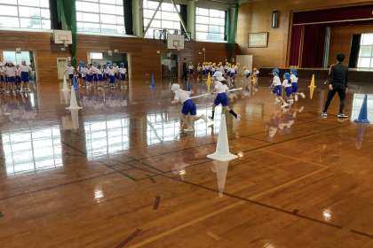 運動会の団体競技「かがやけ!チャレンジ台風の目」の練習をしました。団ごとに作戦を考える場面では、どうすればタイムを縮められるのか活発に意見を出し合う姿が見られました。