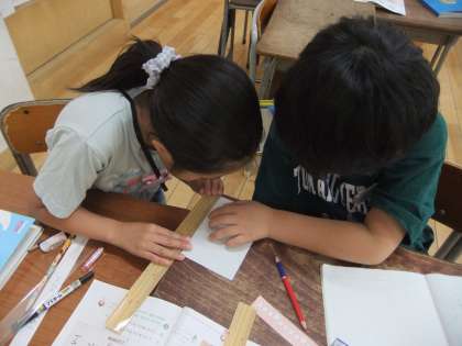 算数科の学習で30cm物差しを使って長さを測りました。「1cmにいくまでにも長さがあるね」と見付けたことを聴き合い、「mm」の長さについて学習しました。