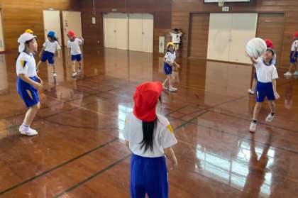 今日の体育科の学習では、キャッチバレーボールをしました。相手がとりやすいボールを投げるためにはどうすればよいか考える姿が見られました。