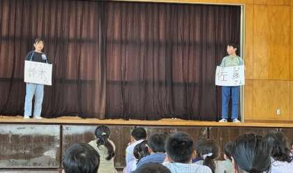 今日は、今年度初めての委員会発表がありました。運営委員会の5年生は、休み時間にも声を掛け合って集まり、発表の練習に取り組んでいました。