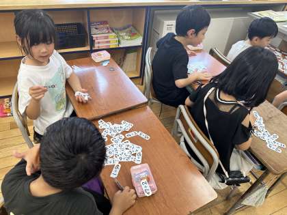 算数科の学習では、「あわせていくつ」「ふえるといくつ」等、足し算の学習に取り組んでいます。今日は計算カードを使って、ペアの友達と問題を出し合ったり、足し算のきまりを見つけたりと自分たちで考えながら学習を進めました。