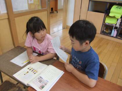 国語科では「お気に入りの本をしょうかいしよう」の学習で友達の好きな本について聴き合いました。
