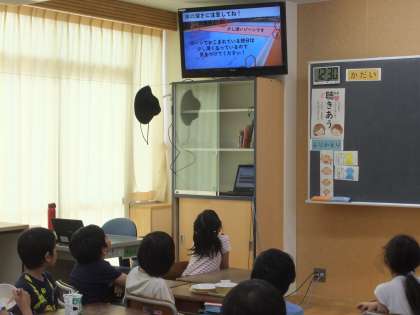 プール開きがありました。楽しく安全な水泳学習になるように真剣に放送を聞き、意識を高めていました。
