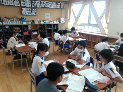 今日は家庭科の学習で、夏を涼しく過ごすための衣服について考えました。子供たちは、衣服の通気性や伸縮性等の特徴を考えながら、その場に合った服装について話し合いました。