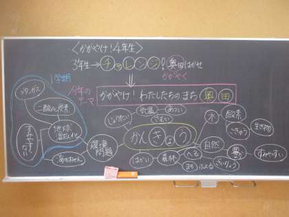 社会科の学習を基に、「環境」について学年で話し合いました。50年後の日本の夏は最高気温が45度にもなるかもしれないと聞いて、驚いていました。