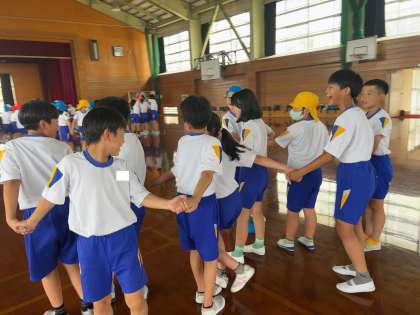 体ほぐし運動の学習では、様々な活動を行いました。「人間知恵の輪」の活動では、友達と声をかけ合いながら取り組み、楽しむ様子が見られました。