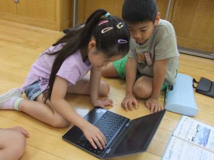 音楽科では「ぷっかりくじら」の旋律づくりに取り組みました。クロームブックでいろいろな組み合わせを試し、曲に合うオリジナルの旋律をつくることができました。