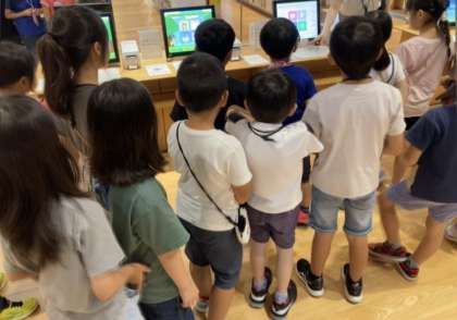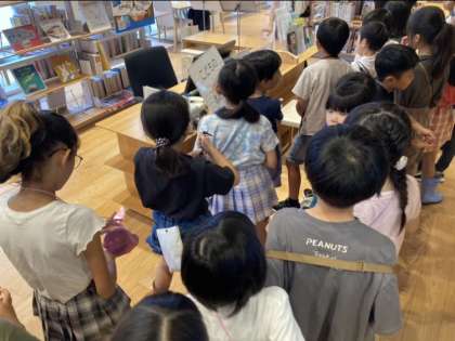 今日は2年1組が校外学習に行ってきました。たくさんの本にふれ、好奇心を高めた子供たちでした。