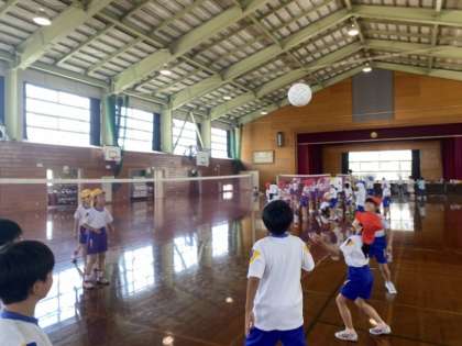 今日は、キャッチバレーボールをしました。仲間と声をかけ合い、パスをつなぎ、アタックをする子供の様子が見られました。