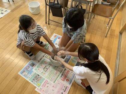 今日は、家庭科の学習で手洗い洗濯をしました。洗濯機で洗う前に手洗いをすることで、より多くの汚れがとれることを学んだ子供たちでした。