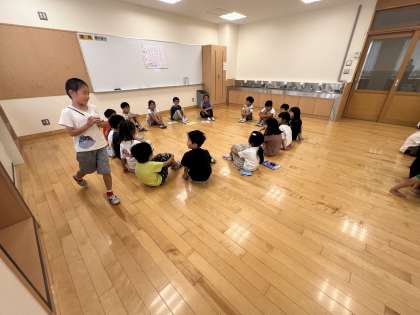 今日は2組主催の学年集会があり、「はんかち落とし」と「だるまさんの1日」をしました。学年のみんなと過ごす楽しい時間となりました。
