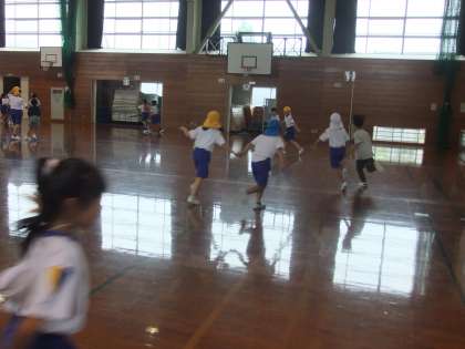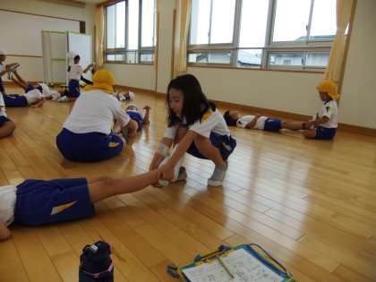 体育科「体ほぐしの運動遊び」の学習では、「たくさんうごくコース」「ゆったりうごくコース」「みんなでうごくコース」の3つのコースを自分で選びながら活動を楽しんでいます。