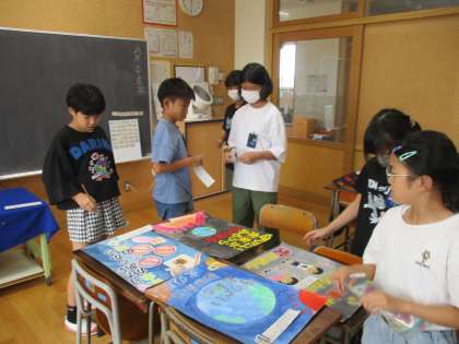 「ていねいに色を塗っている」「文字がはっきりとしていて見やすい」等と、互いの作品を認め合う子供たちでした。