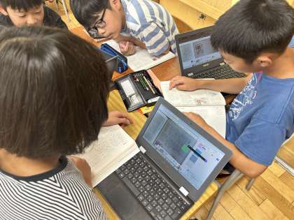 国語科の学習では、二つの新聞記事を比べて読みました。どんな違いがあるのか見付けたり、どうして違うのかを考えたりしました。同じ出来事を伝える記事でも、様々な違いがあることに驚く子供たちでした。