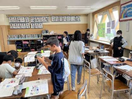 今日の家庭科では、布の材質や特徴について調べました。自分の服や身の回りの布製品の材質がどのような意図で選ばれているのかについて学んだ子供たちでした。