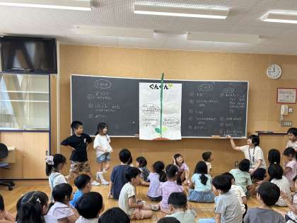 学年で集まって、2学期に頑張りたいことを聴き合いました。学年目標「ぐんぐん」に向かって、自信をもって取り組もうとする1年生です。