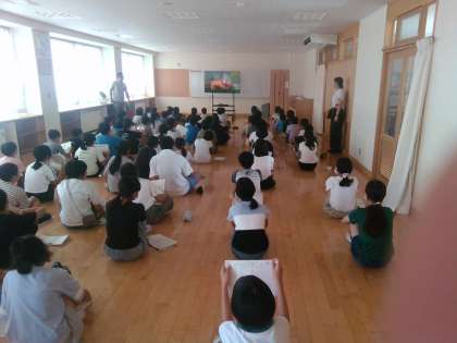 今日は、学習発表会で行う「ライオンキング」を視聴しました。子供たちは、自分たちがつくっていく劇のイメージを膨らませることができました。