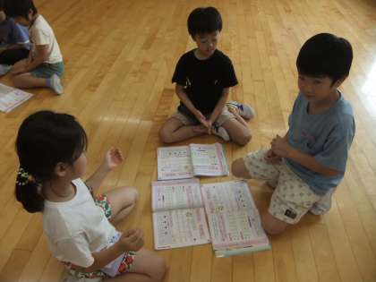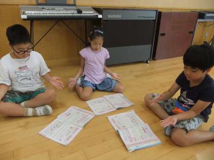 音楽科では、2拍子のリズムの練習をしました。手拍子での練習後、カスタネットとタンブリンで曲に合わせて演奏することができました。