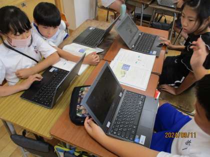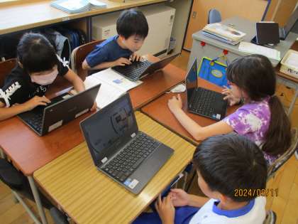 国語科では「Figjam」を用いて、写真の中にある文字がローマ字と英語のどちらであるかを考えました。新しく使うツールに慣れながら、友達と協力して学ぶことができました。