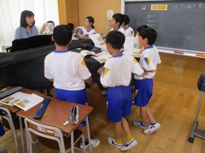 音楽科では「ごんぎつね」の曲に取り組みました。歌・リコーダー・語りの3つのパートに分かれて練習に取り組みました。最後には練習の成果を発揮し、ごんぎつねの物語を音楽で表現しました。