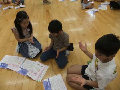 音楽科では、3拍子の拍に乗って、「いるかはざんぶらこ」の曲に合わせてリズムを打ちました。「1,2,3、1,2,3・・・」と3拍子を確かめながら、手拍子をしたり、楽器で演奏したりしました。