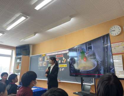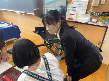 栄養教諭実習生の先生から、給食に入っていた食品の栄養と、給食室内の様子を教えていただきながら、食事をバランスよく食べることの大切さについて考えました。給食を残さず、バランスよく食べようとする意識を高めた子供たちでした。