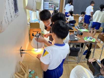 今日は理科の学習で、電気を光に変えられるかを調べました。子供たちは、自分で考えた実験の結果を伝え合いながら、考えを深めました。
