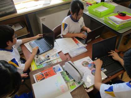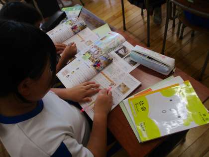 社会科「自然災害からくらしを守る」では、災害時に県や市、地域がそれぞれ行っている取組について学習しました。本やインターネットを使い、資料を集め、分かりやすくノートにまとめました。