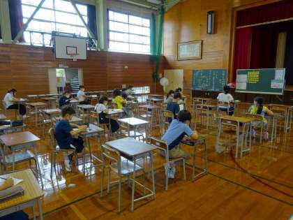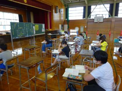 5年生は、新型コロナウイルス感染拡大予防のため、体育館を教室として過ごしています。いつもと違う場所での学習になりますが、静かに集中して取り組んでいる姿に、高学年のたくましさを感じます。安全に留意しつつ、場所を変えながら、少しでも楽しんで学校生活を送られるようにしていきたいと思います。
