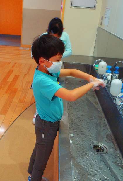 分散登校が始まり、4日がたちました。新しく決まったルールがたくさんありますが、1つずつ丁寧に取り組もうとしています。朝、ランドセルを自分の机に置いたらすぐに手を洗うという習慣も身に付けました。友達と距離をとって並んだり、手洗いをしたりするのもとても上手になっています。