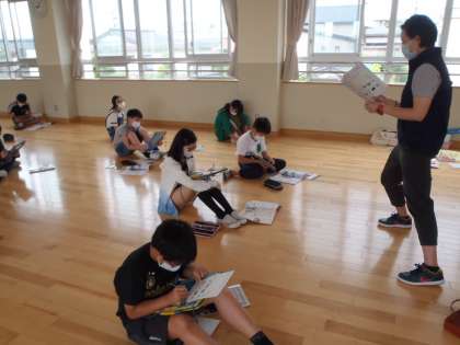 週2回になった外国語科は、専門の先生と一緒に学習しています。先生の話をよく聴き、世界の国々について関心を高めていました。