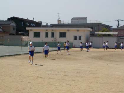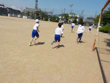 青空の下、元気いっぱいにグラウンドを走り、体つくりの運動に取り組みました。汗をいっぱいかいた子供たちでしたが、走り終わった後には、「久しぶりに走れて気持ちよかった」や「思っていたより走ることができた」等、うれしそうに話していました。