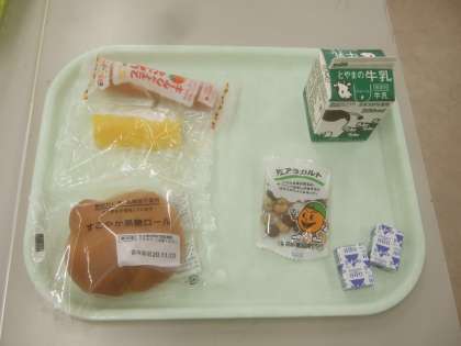 本日6月10日(水)から19日(金)まで、個包装給食となります。これまでのように給食当番が配膳するのではなく、包装された食品を子供たちが順番に一つ一つ取っていくようにしています。