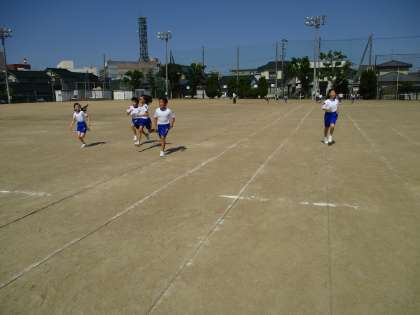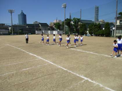 暑い日が続いていますが、子供たちは元気に体育科の授業に取り組んでいます。今日は、様々な体勢からスタートダッシュをして、素早く走る運動をしました。