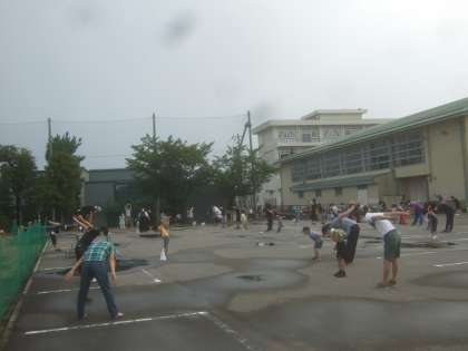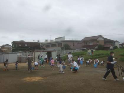 その後、グラウンド整備を行いました。草むしりやグラウンドで水がたまりやすい所への土入れを行いました。