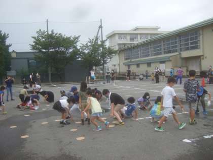 次に、レクリエーション「ひっくり返しゲーム」を子供たちが楽しみました。