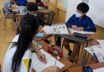 織田信長が今までと違う新しいことをしたことや豊臣秀吉が政治の仕組みを整えて武士が支配する世の中をつくっていったこと等、「天下統一」というキーワードを基に聴き合いを進めていきました。