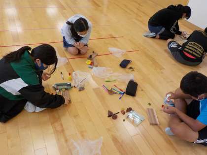 校外学習で拾ってきた秋の実を使って、クラフトづくりをしました。