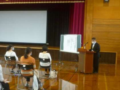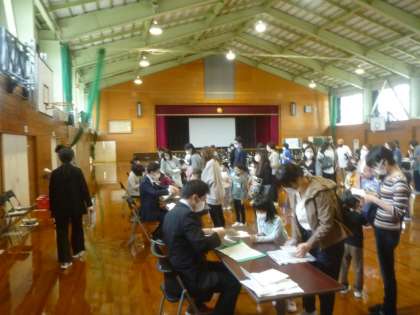 就学予定児と保護者の方で諸検診・検査を受けていただいたり、体育館で入学に関する保護者説明会を行ったりしました。