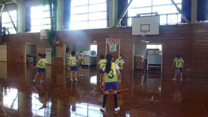 体育の授業では、セストボールというバスケットボールに似たボールを使ったゲームに取り組んでいます。ドリブルをせずにパスだけでシュートにつなげるので、チームの仲間とどうしたらパスがつながるかを相談し、作戦を考えています。最後には、1組と2組の対戦も予定していて、子供たちの意欲も高まってきています。