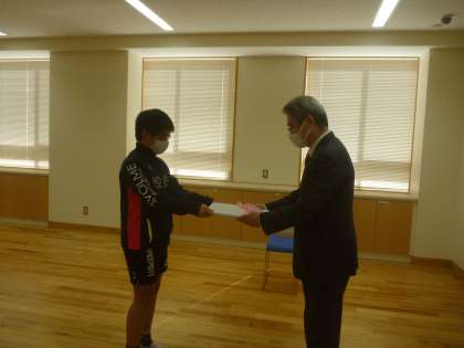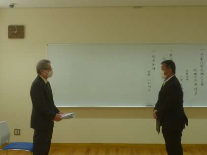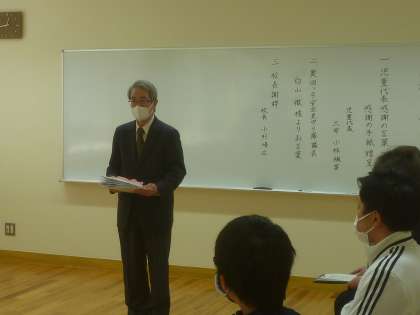はじめに、児童代表が隊長さんに対して感謝の言葉を述べ、そして、各地区ごとに分けられた手紙を渡しました。