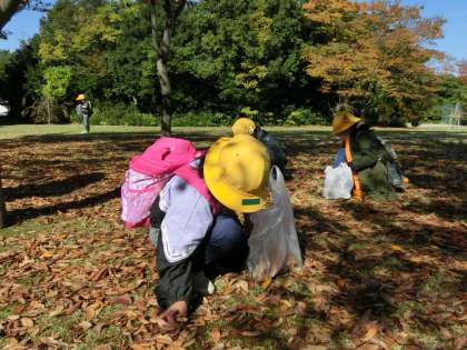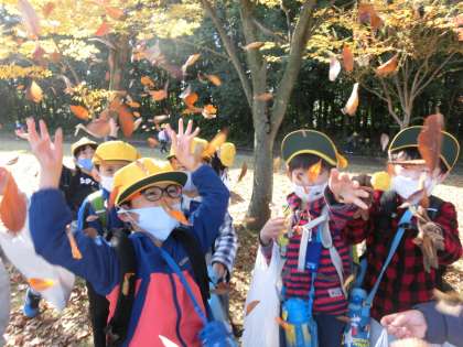 天候にも恵まれ、暖かい気候の中で秋見付けをすることができました。落ちているどんぐりやいろいろな形の葉っぱに目を輝かせ、拾ったり遊んだりした子供たち。体全体で秋を感じている様子が見られました。袋いっぱいに秋を詰め込んだ子供たちの満足そうな顔が印象的でした。