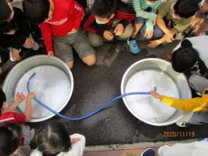 サイフォンの仕組みをホースを使って再現することで、先人の技術に感動していました。これからは椎名道三がどのような物を使って用水をつくったのか調べていきたいと思います。