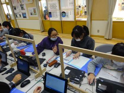 総合的な学習の時間では、富山市でも大切に考えられているSDGsについて考えています。「富山市の課題は何か」「自分たちの生活に関わっていることはないか」「自分たちの生活の中に解決のヒントはないか」等を探っています。コンピュータ室で調べ学習をしています。似かよった課題を抱いた友達同士で、意欲的に調べ学習を行っています。